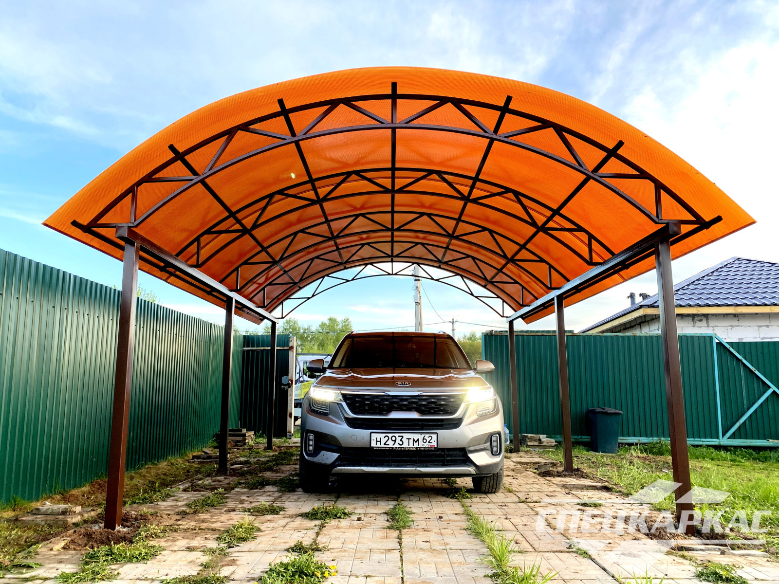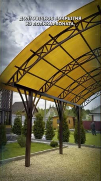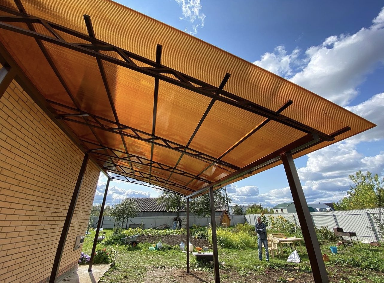 Навес из листов поликарбоната способен стать настоящей «изюминкой» частного дома и приусадебной территории. Полупрозрачные сооружения эстетичны и надежны. Их устанавливают всего за 1-2 дня, за ними легко ухаживать – достаточно чистой воды и неабразивного средства. На первый взгляд кажется, что без такой конструкции вполне можно обойтись. Но стоит купить навес из поликарбоната от компании «Спецкаркас» – и жизнь станет намного проще и комфортнее. Ваше авто больше не будет ржаветь под дождем, крыльцо останется чистым даже в снегопад, на участке появится уютная зона отдыха в кругу друзей и близких.